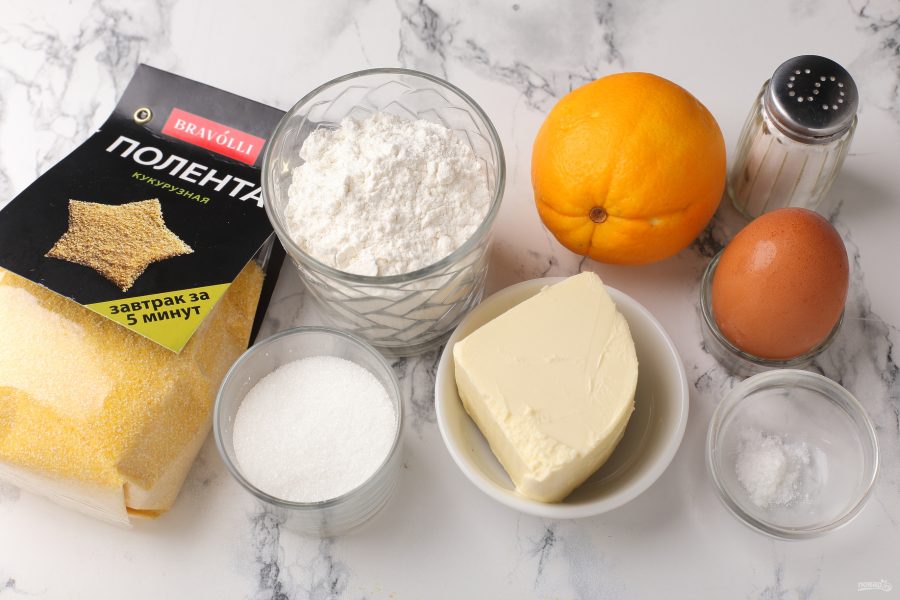Соедините муку, поленту и соль.