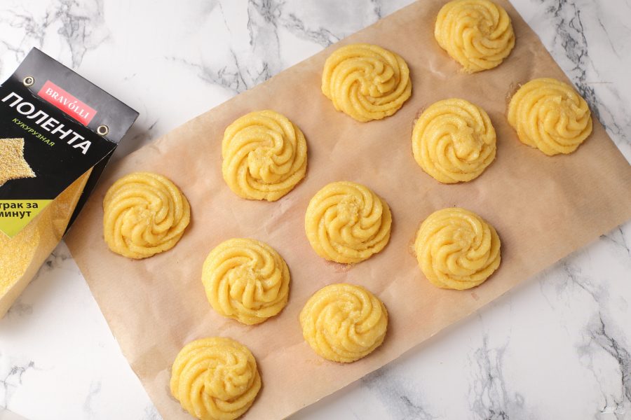 Печенье я буду выкладывать при помощи кулинарного мешка, но можно просто сформировать небольшие шарики руками и слегка приплюснуть их сверху.