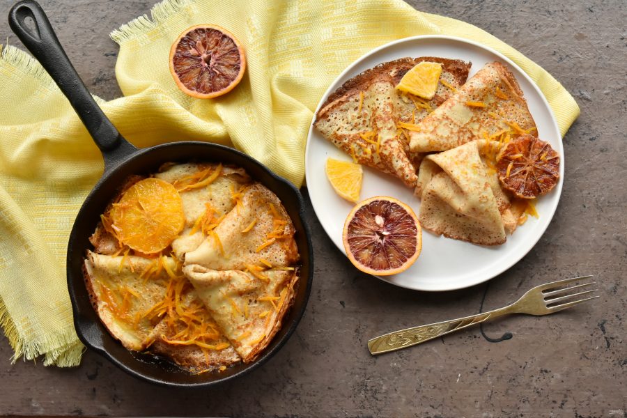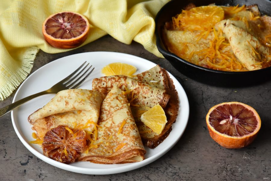 Готовим тонкие французские блинчики в апельсиновом соусе. Тонкие, нежные и ароматные апельсиновые крепы — отличный способ превратить обычный завтрак в маленький праздник.