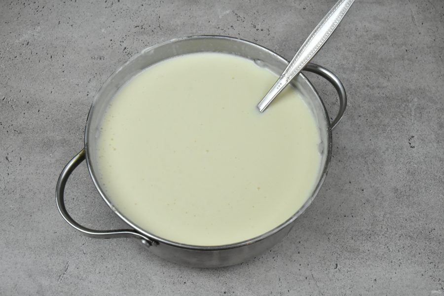Для блинного теста соедините яйца с сахаром и солью, слегка взбейте. Влейте растительное масло и всыпьте муку с содой. Замешайте тесто и порциями влейте теплое молоко, продолжая размешивать смесь венчиком. Блинное тесто однородное, без комочков, достаточно текучей консистенции.