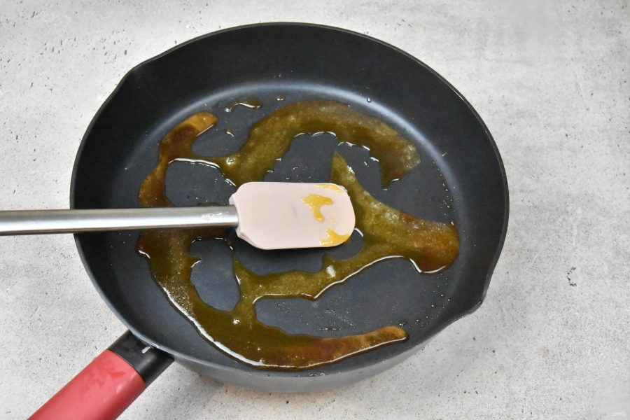 Мешать его не нужно, поворачивайте сковороду за ручку для равномерного распределения и расплавления сахара.