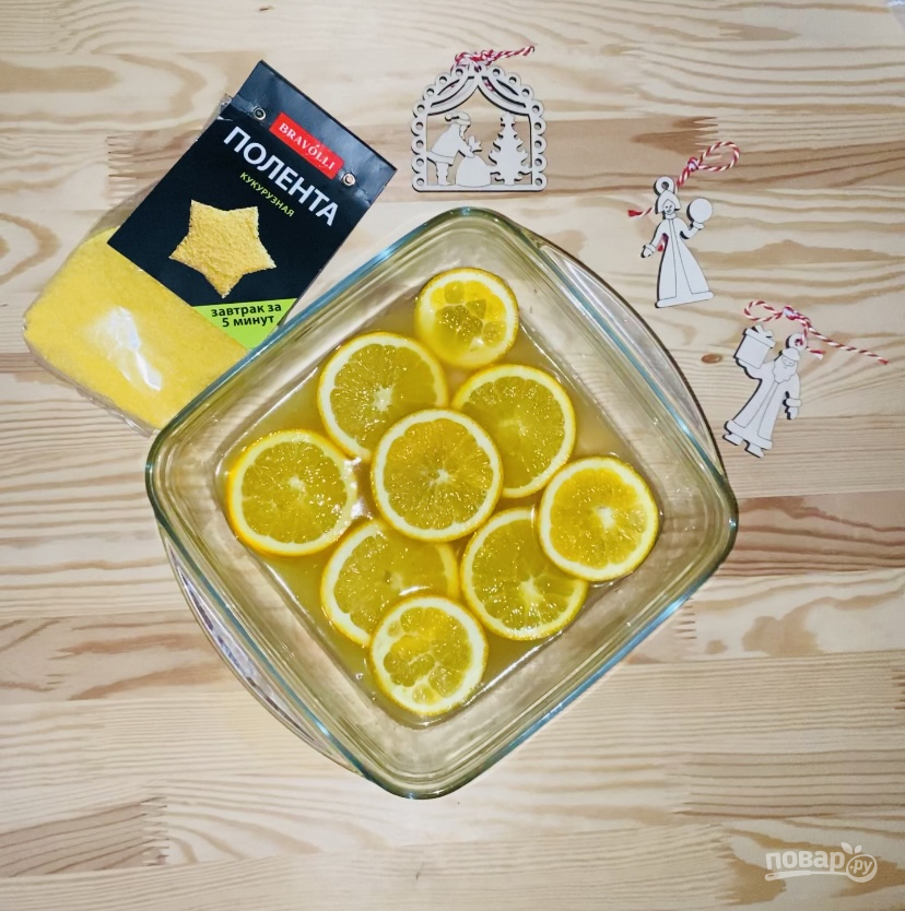Выложите тесто поверх апельсинов. Поставить в предварительно разогретую духовку до 180 градусов.