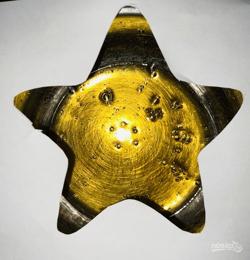 На медленном огне растопите 6 ст. ложек сахара и 3 ст. ложки воды. Доведите карамель до золотистого цвета, добавьте 2 ст. ложки сливочного масла.