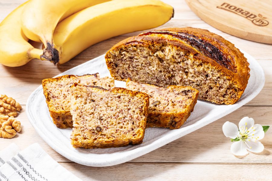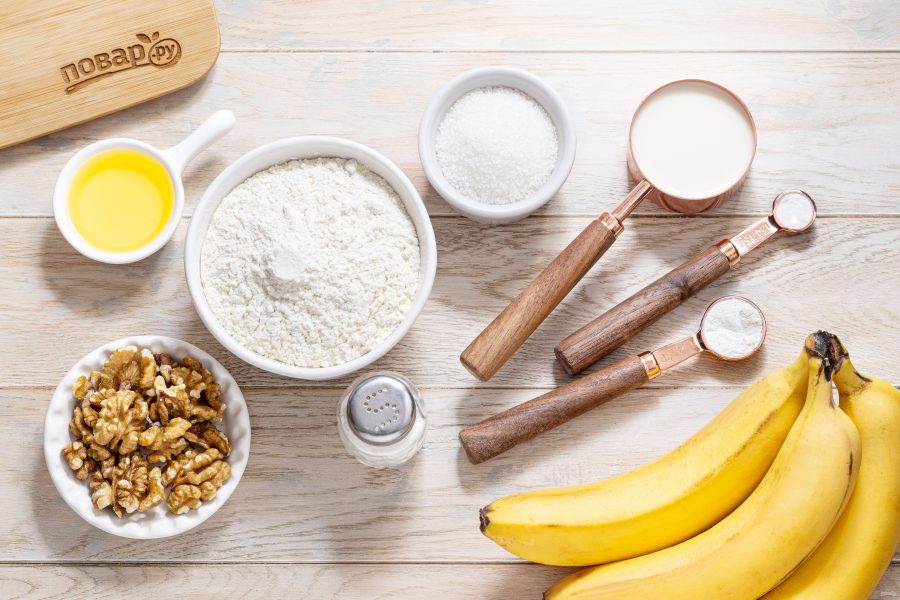 - Бананы 2 штуки (1.5 шт. — для хлеба, 1/2 шт. — для украшения)