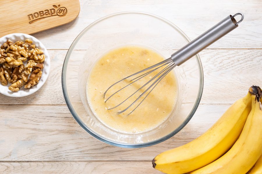 Ниже я расскажу подробнее, как приготовить банановый хлеб в аэрогриле. Количество ингредиентов рассчитано на форму диаметром 16 см. Бананы обязательно выбирайте спелые, так хлеб получится ароматнее и вкуснее. По желанию можно добавить молотую корицу или ванильный экстракт, а грецкие орехи заменить на пекан или добавить шоколадные капли. Количество сахара можно увеличить до 100 грамм, если хотите получить очень сладкую выпечку.Состав / Ингредиенты:
