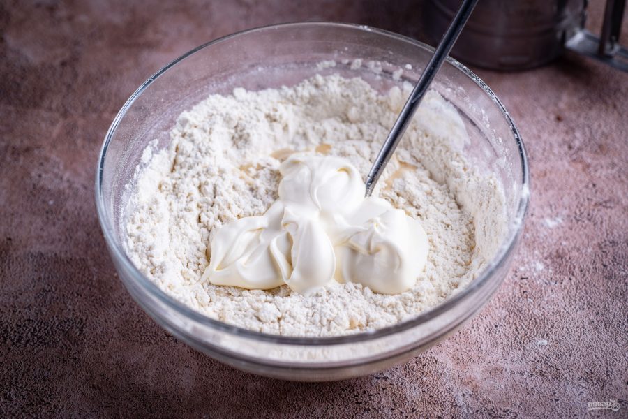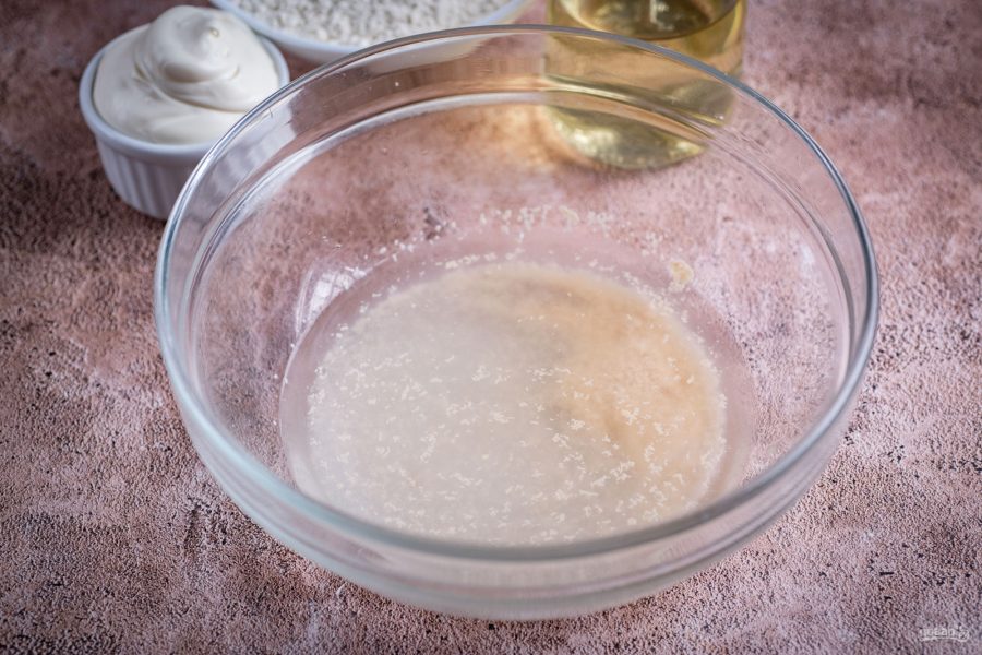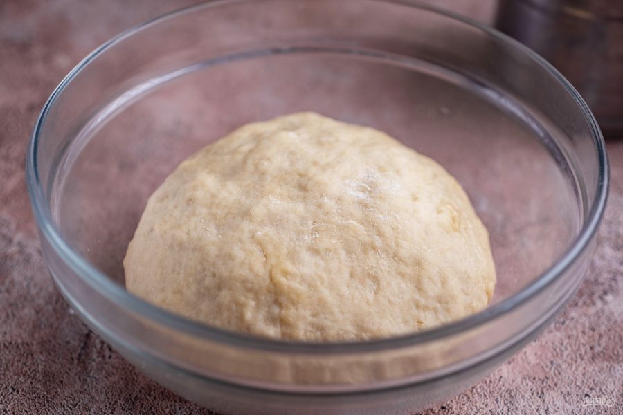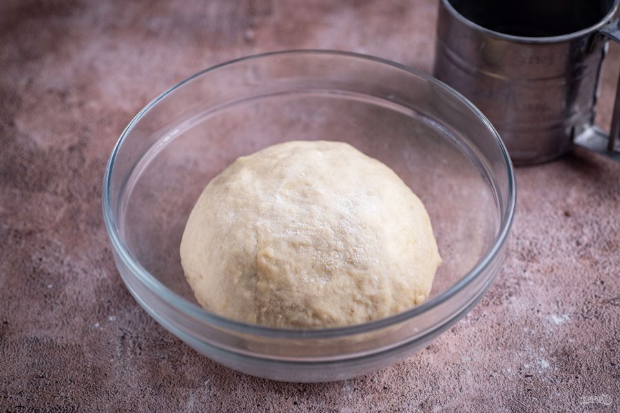 Замесите мягкое, не прилипающее к рукам тесто. Тесто округлите в миске и оставьте на 30