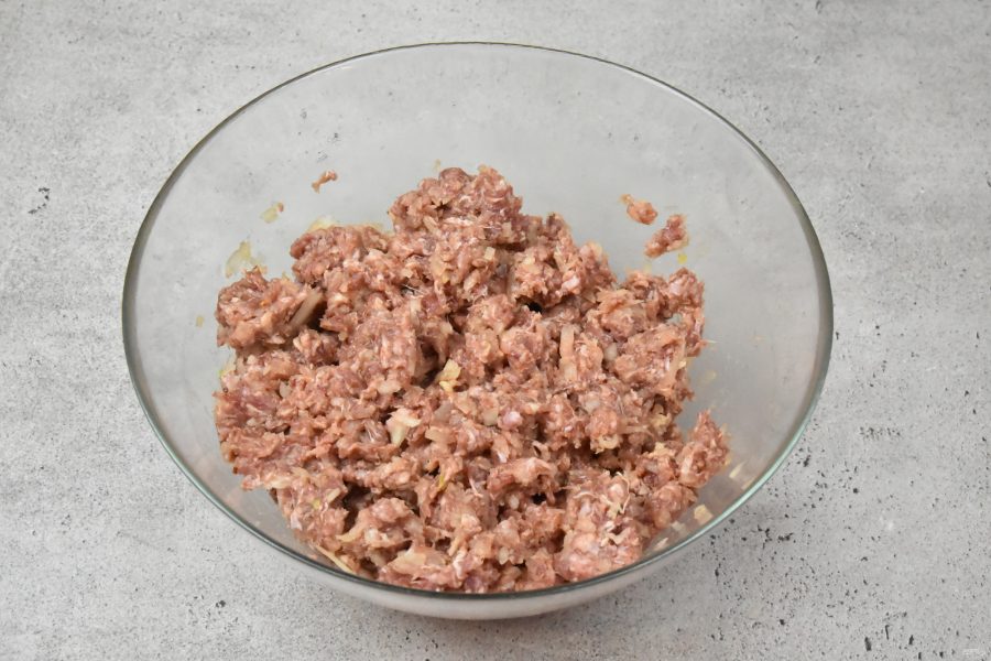 Размешайте фарш, чтобы все составляющие равномерно распределились. Обязательно попробуйте на вкус. При необходимости подсолите.