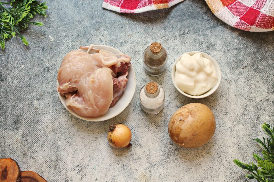 Подготовьте все необходимые ингредиенты для приготовления белого супа. Курицу сполосните, картошку почистите и вымойте.