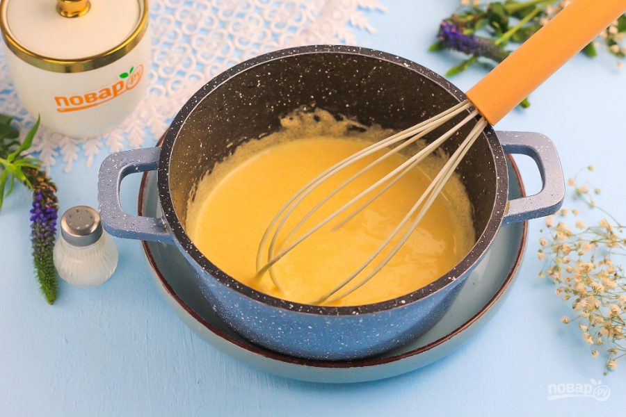 Заварите крем на среднем нагреве примерно 15-20 минут, время от времени перемешивая, чтобы он не пригорел на дне емкости.