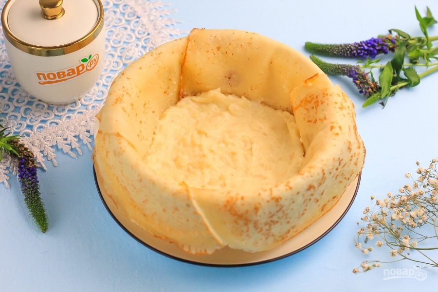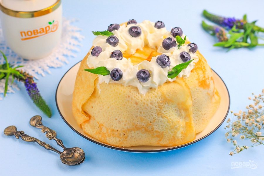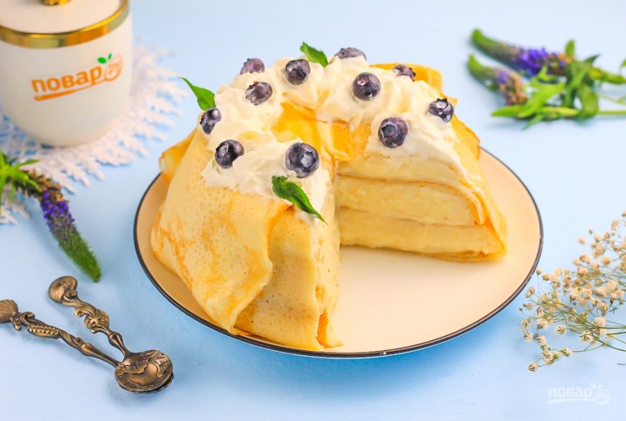 Блинный торт с заварным кремом готов!