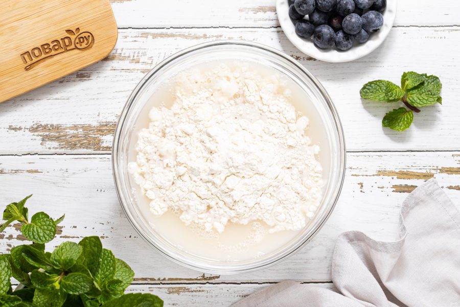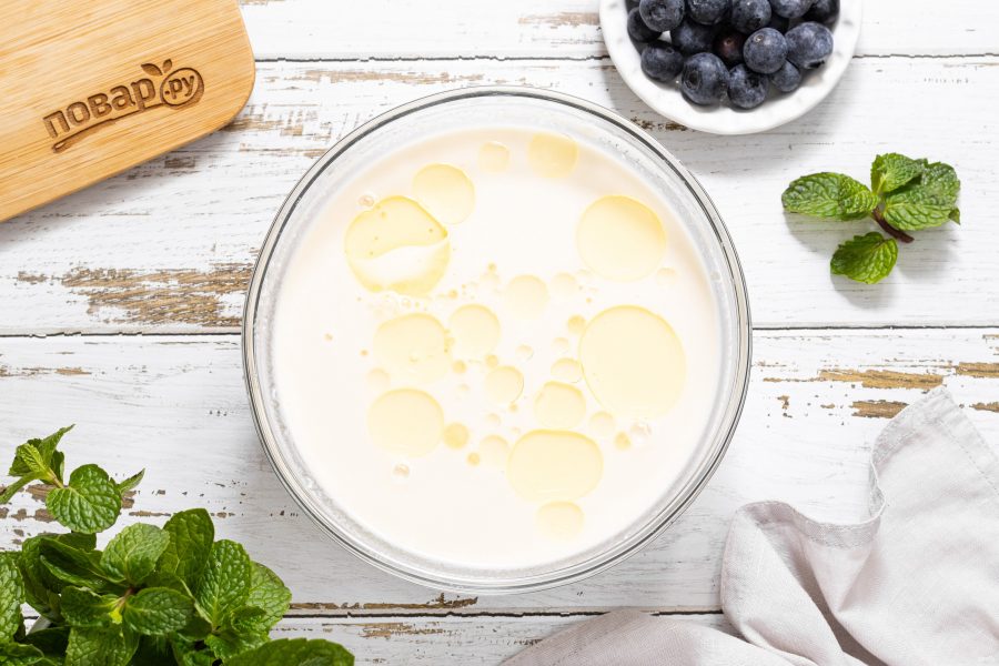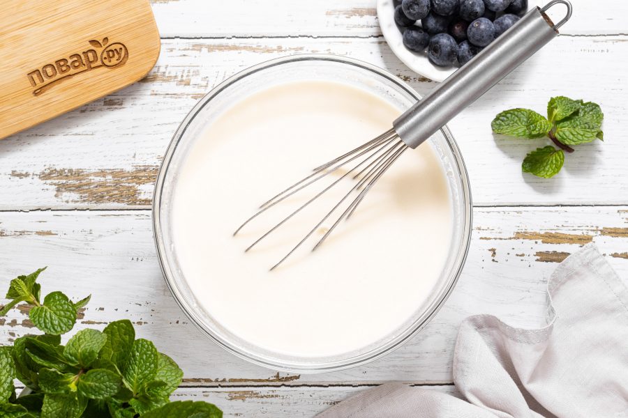 Перемешивайте венчиком. По консистенции тесто не должно получаться густым, поэтому муки может потребоваться меньше, чем указано в ингредиентах.