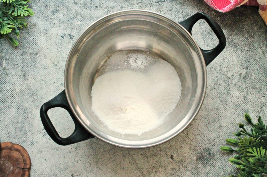 Влейте в кастрюлю теплое молоко и хорошо перемешайте до однородности и растворения кристаллов.