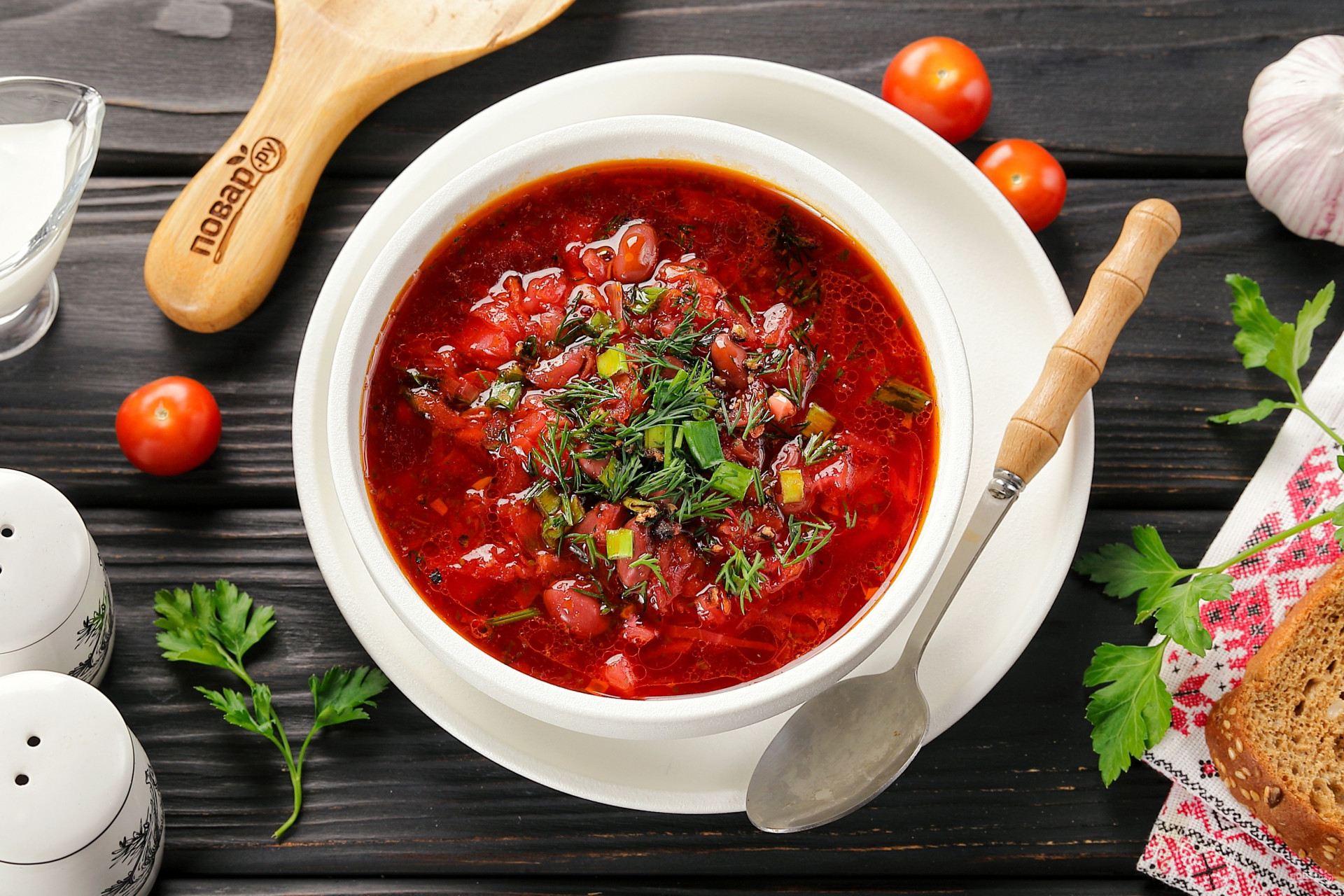 Борщ постный готов. Подавать можно с постным майонезом, зеленью и свежей горбушкой хлеба. Приятного аппетита!