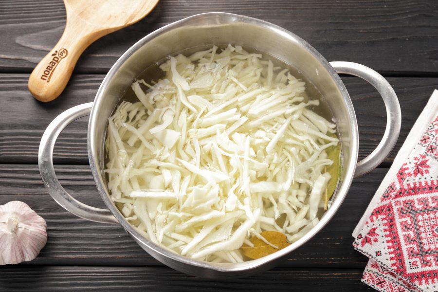 Когда картофель закипит, добавьте нашинкованную капусту. У меня зрелый кочан и я добавила на этом этапе. Если у вас молодая капуста, то добавьте её за 5-7 минут до готовности картофеля.