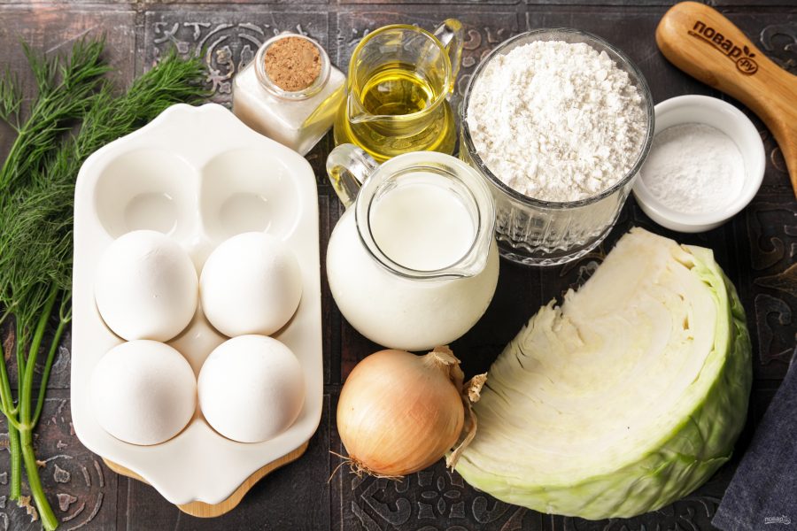 Тёплую выпечку разрежьте на порционные куски. Пирог с капустой вкусен как тёплый, так и холодный. Приятного аппетита!