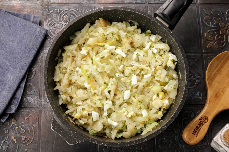Перемешайте и обжарьте до мягкости. Молодая капуста будет готова быстрее, чем капуста старого урожая.