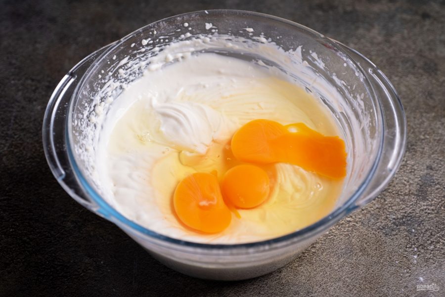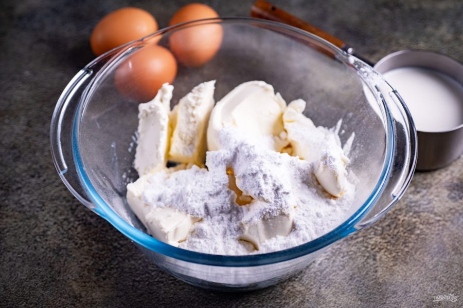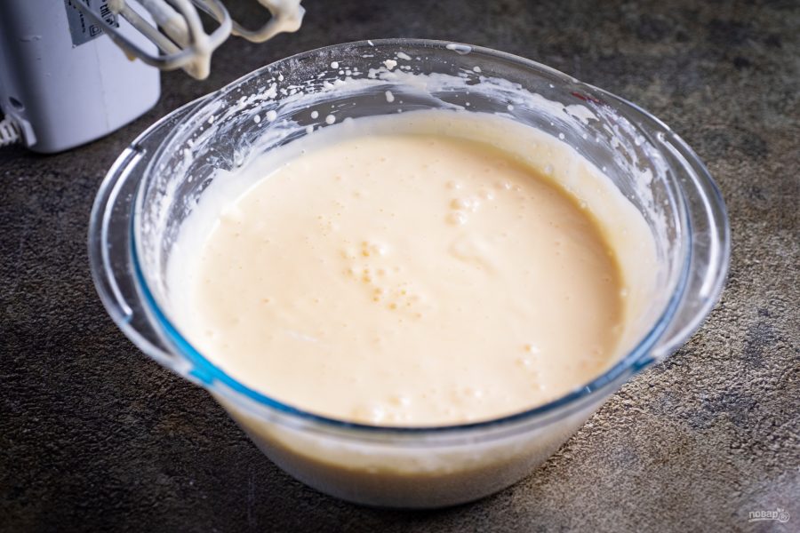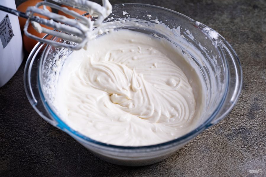 Вливайте к этим ингредиентам небольшой струйкой сливки и при этом взбивайте ингредиенты миксером. В итоге у вас должна получиться однородная кремообразная масса.