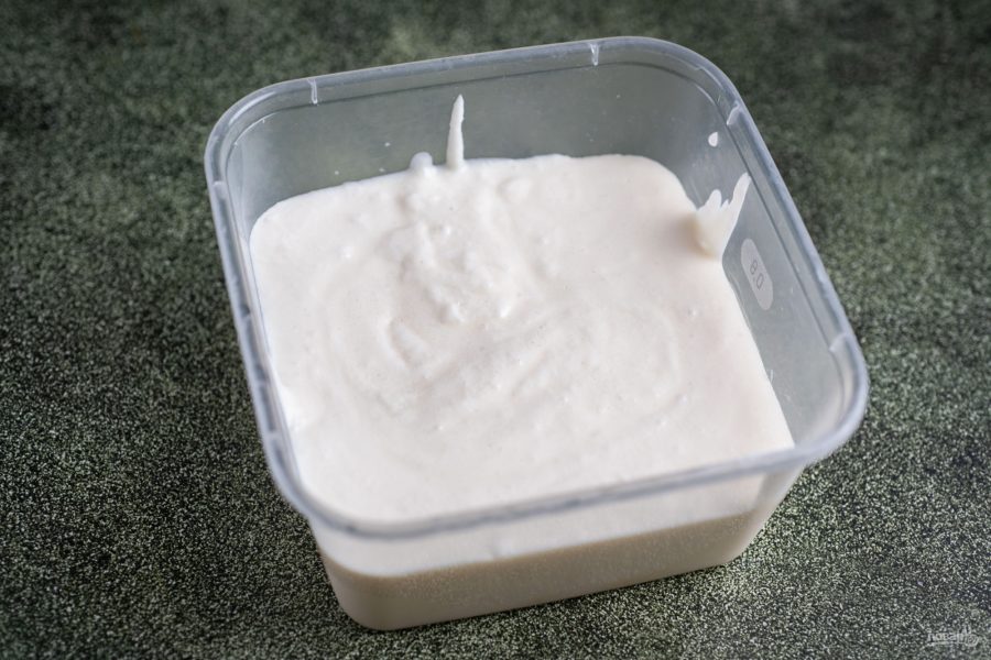 Полученную смесь выложите в пищевой контейнер с крышкой, отправьте в морозильную