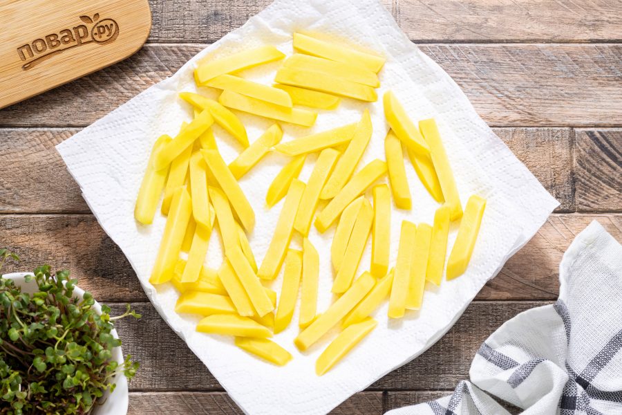 Слейте воду, обсушите картофель с помощью бумажных полотенец.
