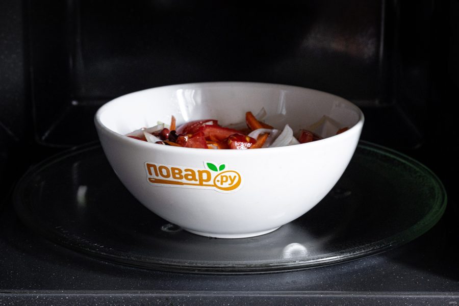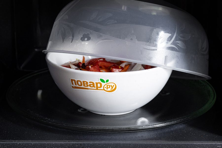 Накройте крышкой или колпаком для микроволновой печи. Готовьте на максимальной мощности 15-20 минут.