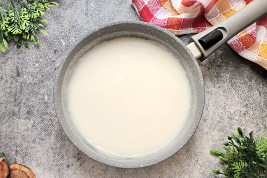 Тонкой струйкой вливайте теплое молоко, все время хорошо мешая, чтобы не было комочков. Доведите соус до кипения.