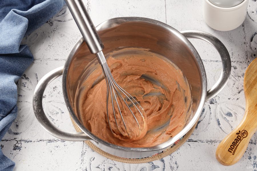Тонкой струйкой влейте кипяток, можно использовать воду из под макарон. Соус должен быть однородный и без комочков.
