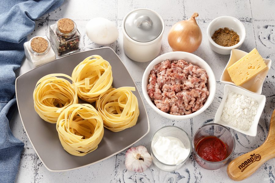 Подготовьте все ингредиенты по списку. Фарш можете взять тот, что больше нравится. Подойдёт куриный, свиной, индюшиный или смешанный.
