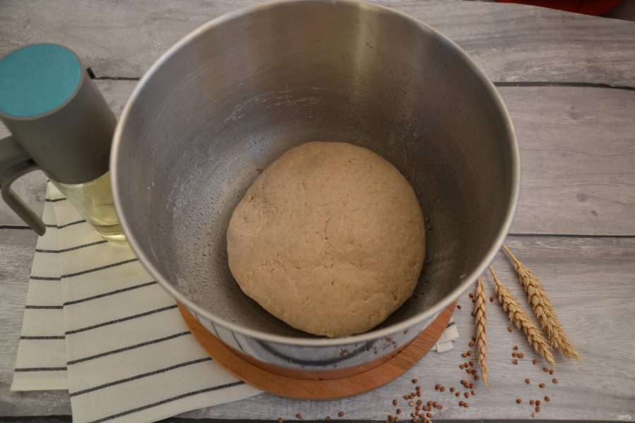 Смажьте емкость для расстойки теста растительным маслом, выложите тесто, накройте пленкой, оставьте при комнатной температуре для брожения на 3 часа.