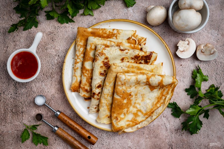 Готовые блины сразу же подавайте к столу.
