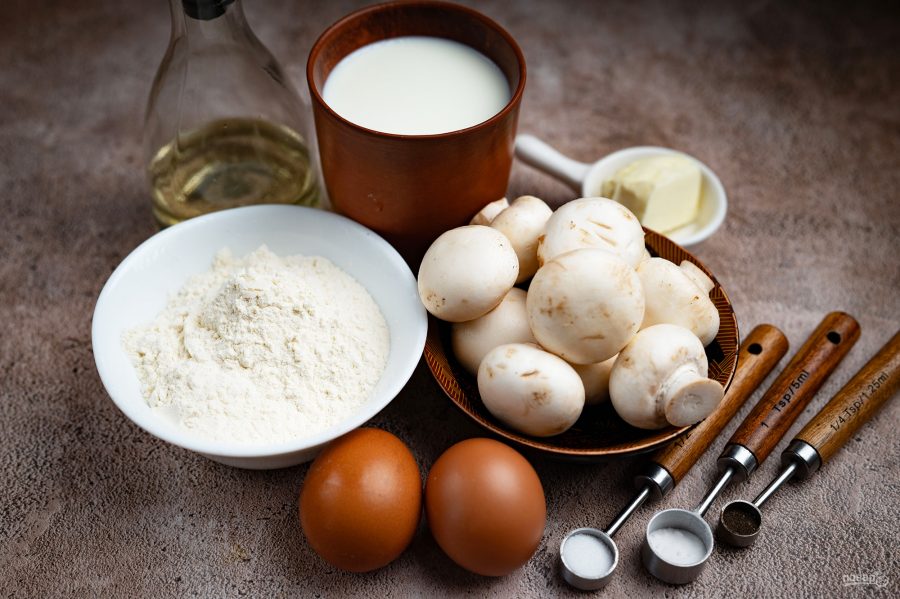 Все ингредиенты для удобства выложите на стол. Шампиньоны сразу же помойте в