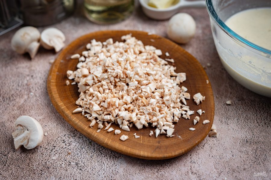 Шампиньоны мелко нарежьте.