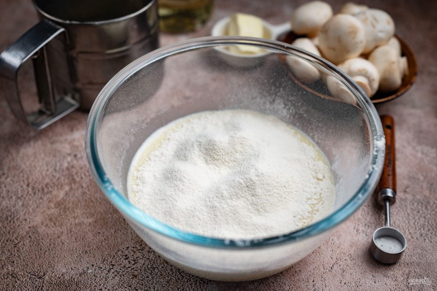 Теперь просейте муку с разрыхлителем.