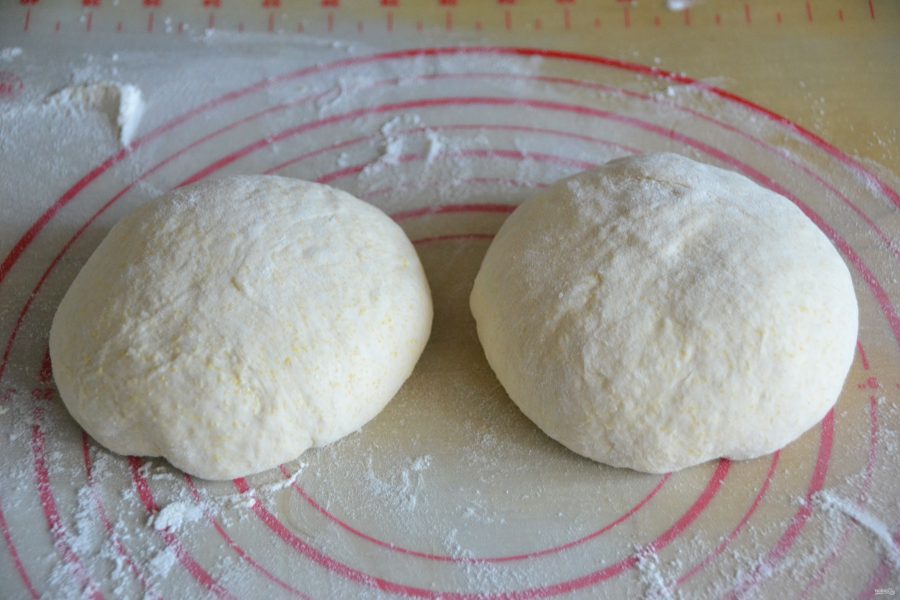 Разделите тесто на 2 части.