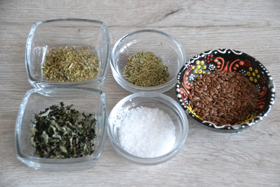 Подготовьте посыпку, это может быть: сухой розмарин, базилик, орегано семена льна, кунжут, крупная морская соль, сыр, натёртый на мелкой терке.