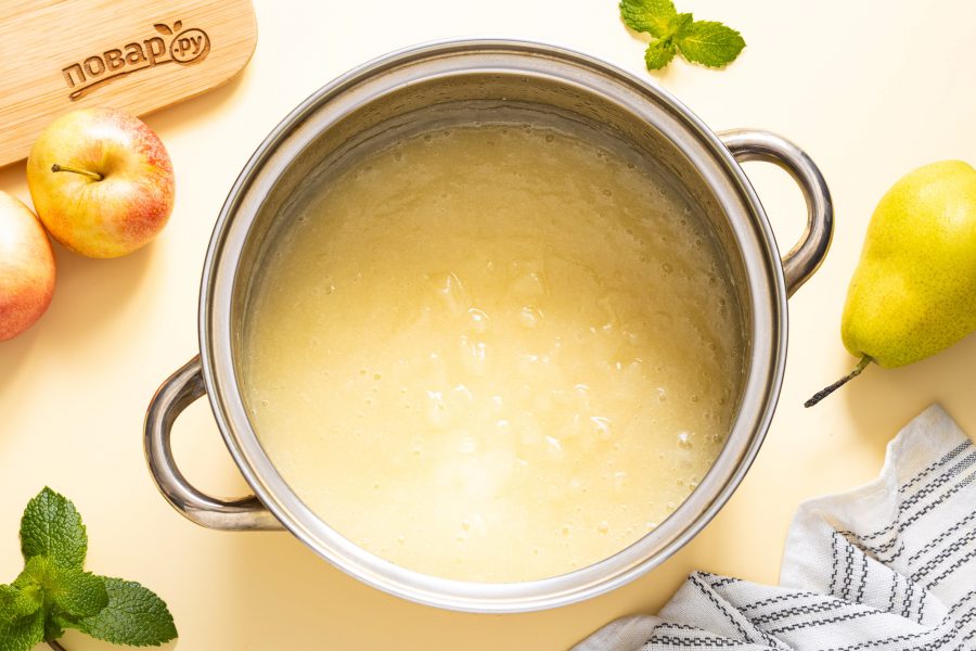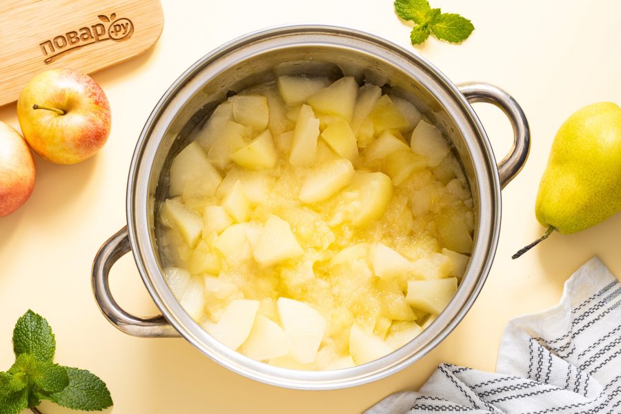 Накройте крышкой и готовьте до мягкости примерно 20-30 минут. Время приготовления будет зависеть от сорта фруктов.