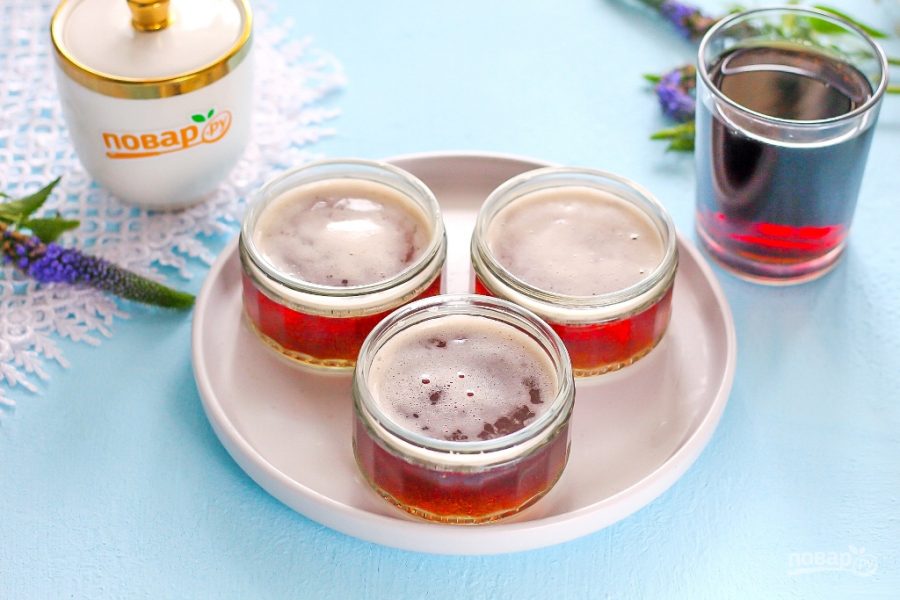 Разлейте ароматную жидкость в небольшие баночки, стаканы или в чашки, слегка не доливая до краев, чтобы не расплескать.