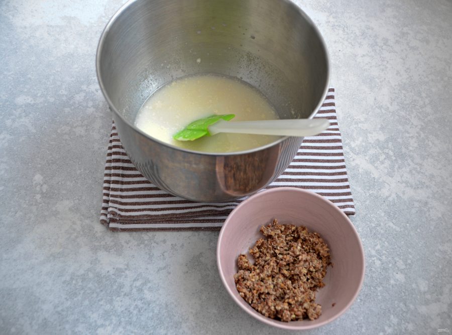 Вмешайте измельченные пророщенные зерна, примерно 100 грамм, вес может немного отличаться, это не критично.