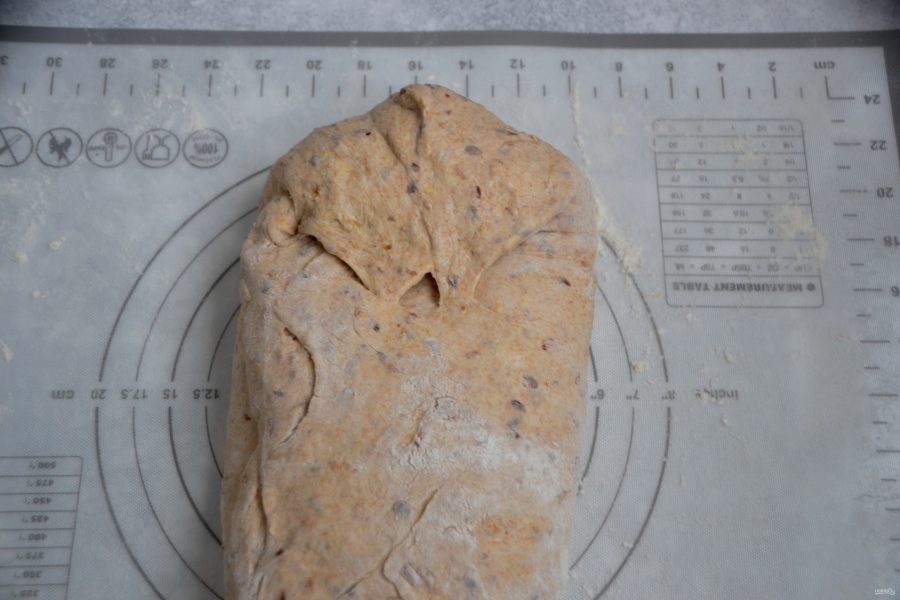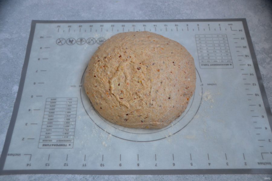 Наконец, можно приступать непосредственно к приготовлению хлеба. Выложите тесто на стол, слегка присыпанный мукой, соберите в шар.