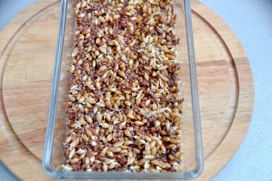 Измельчите пророщенные зерна любым способом, если останутся частички неразмолотых зерен, это допустимо.