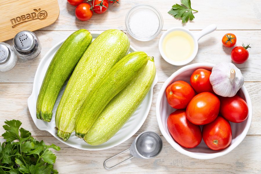 Ниже я расскажу подробнее, как приготовить кабачки в томате на зиму. Из указанного количества ингредиентов получается 2 банки объемом 500 мл. Кабачки выбирайте молодые, с тонкой кожурой и нежными семенами, а помидоры мясистые и спелые. Это вкуснейшая овощная закуска, которая станет хорошим дополнением к основному блюду, а также ее можно подавать просто с ржаным хлебом.Состав / Ингредиенты: