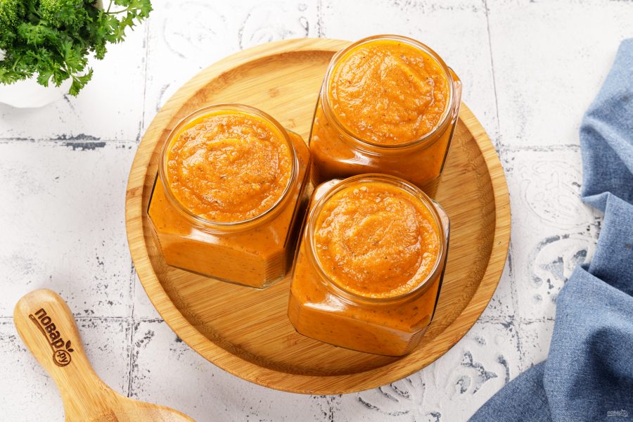 Переложите горячую икру в стерилизованные банки и закрутите стерильными крышками. Переверните и остудите "под шубой". Храните в тёмном и прохладном месте.