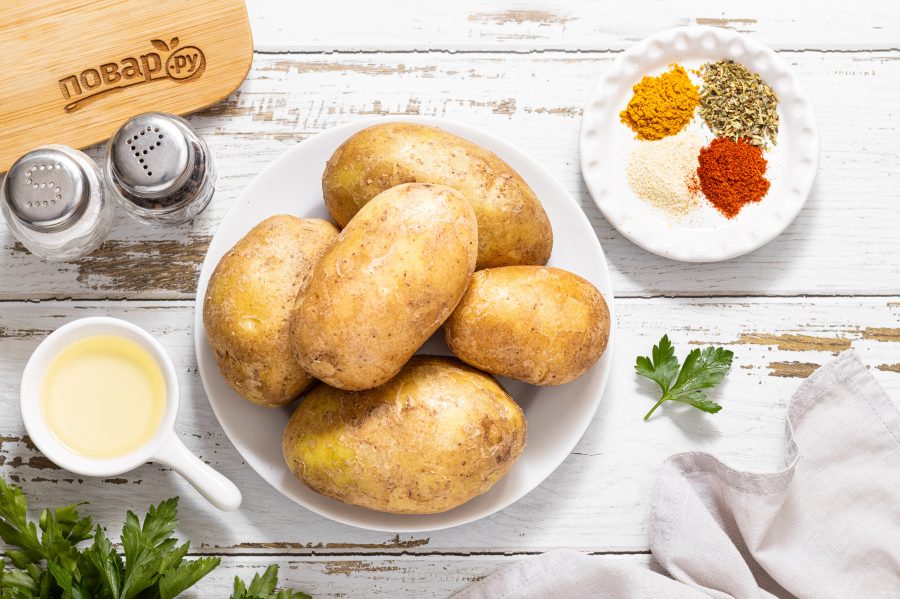 Нарежьте картошку на ломтики среднего размера или дольками. Промойте в холодной воде, затем обсушите с помощью бумажных полотенец.