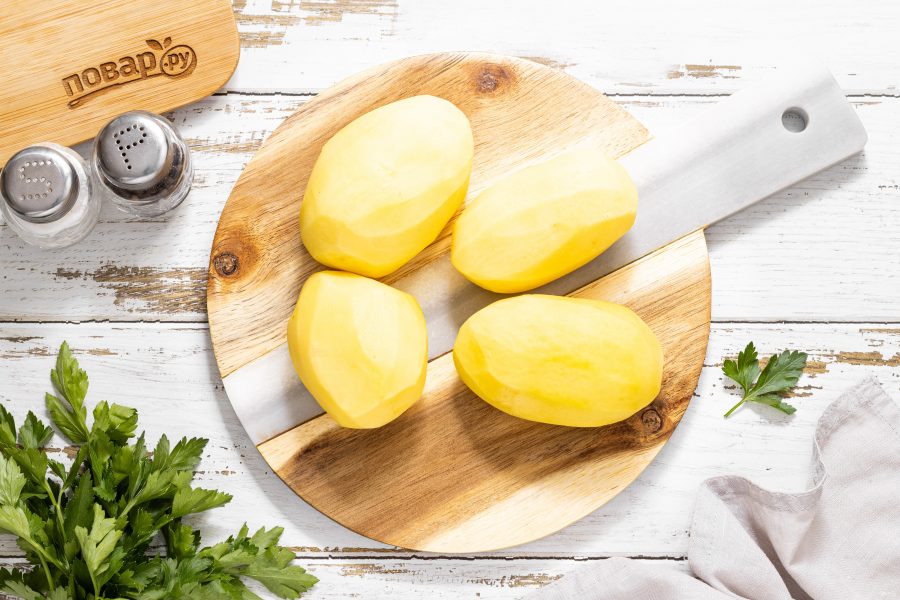 После очистите от кожуры. Молодую картошку с тонкой кожурой без повреждений можно оставить, как есть, не очищая.