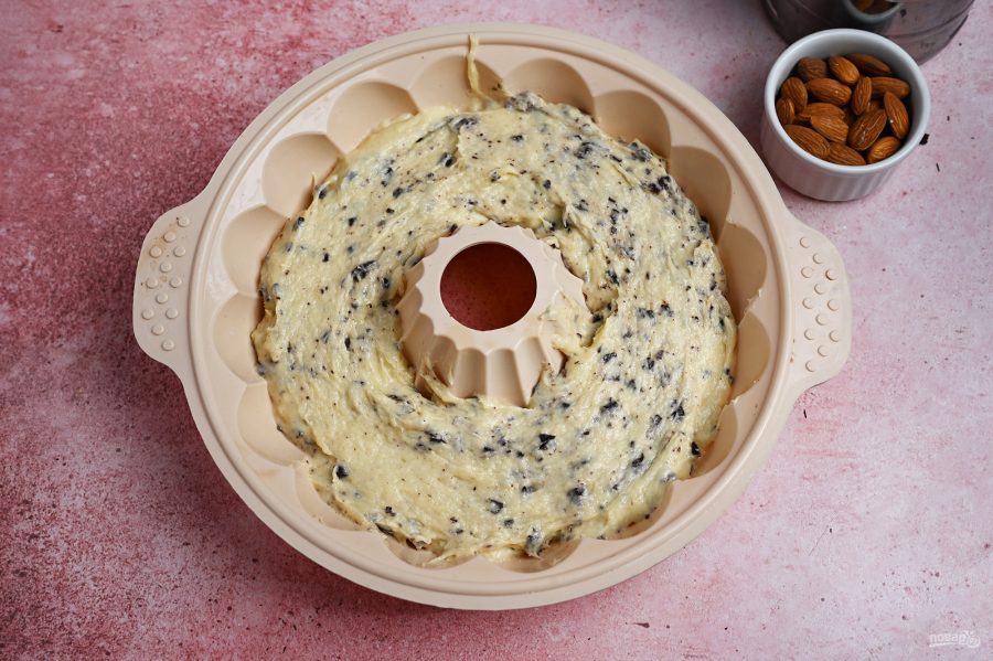 Тесто выложите в силиконовою форму, отправьте выпекаться в заранее разогретую до 180 градусов духовку на 35-40 минут.