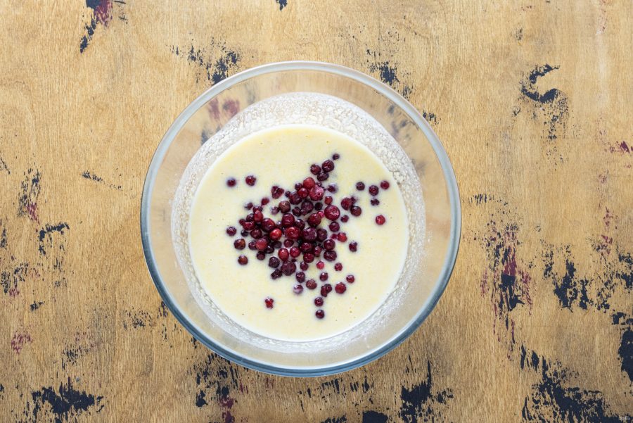 В конце добавьте бруснику. Если используете замороженную ягоду, то предварительно ее можно не размораживать.