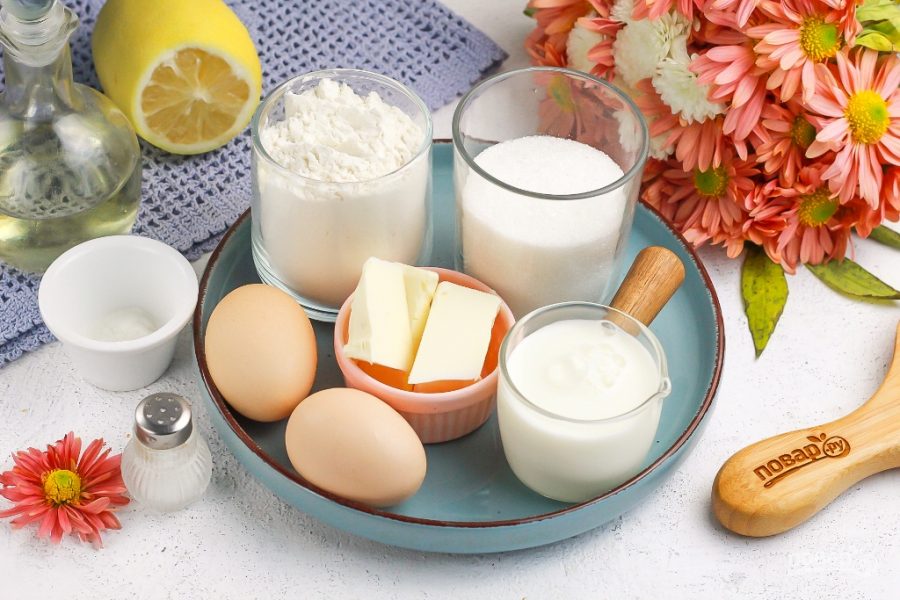 Подготовьте указанные продукты. Сливочное масло можно заменить качественным маргарином, но не спредом. Допустимо вместо сливочного масла влить растительное без аромата.