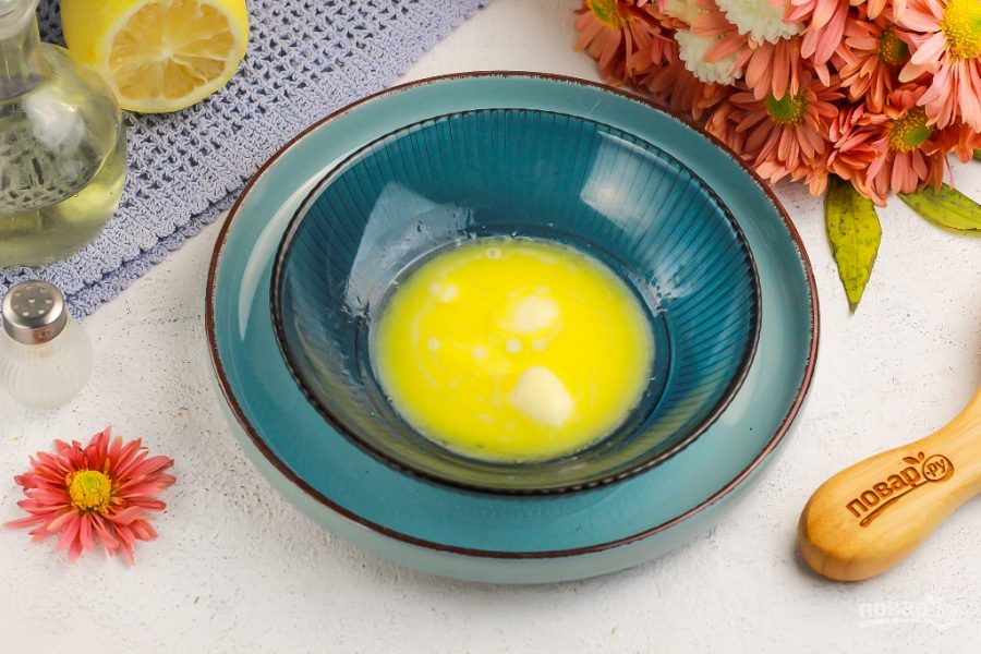 Растопите сливочное масло или маргарин в микроволновке, на водяной бане, на сковороде и т.д. Вмешайте его в тесто 1-2 минуты.
