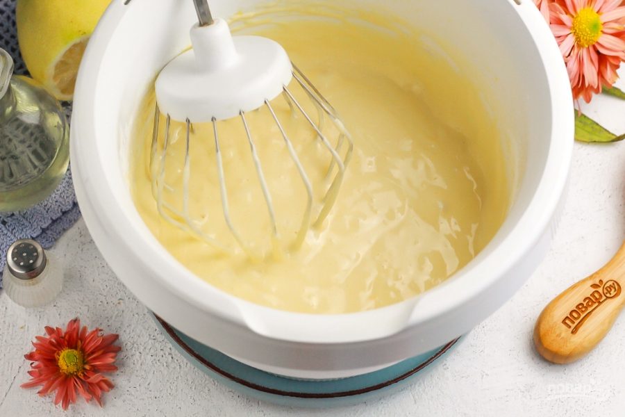 У вас получится густоватое тесто. В него еще добавится растопленное масло, поэтому не переживайте.