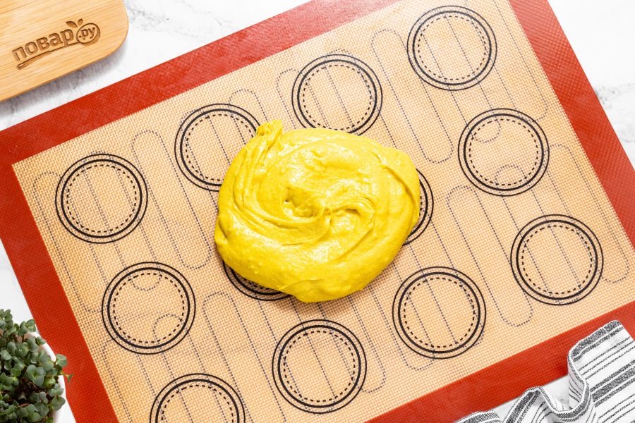 Получившуюся смесь, пока она еще горячая, перелейте на рабочую поверхность. Я использую коврик для выпечки.