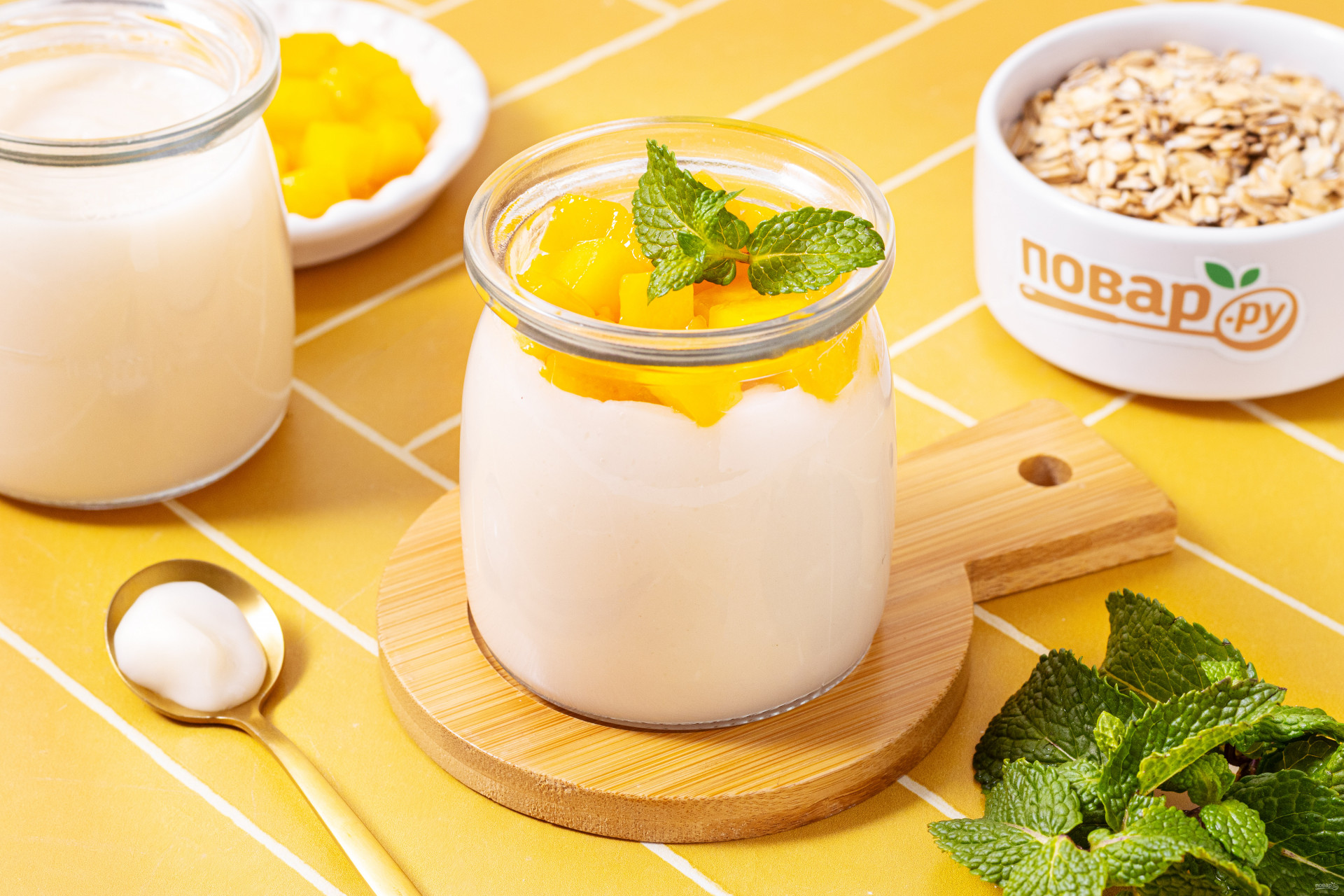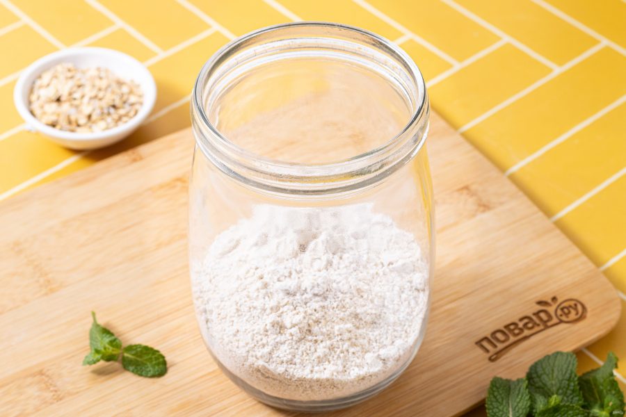 Пересыпьте измельченную овсянку в банку.
